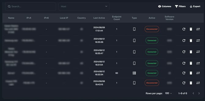 - Status: The current status of the host (e.g. Connected/Disconnected)