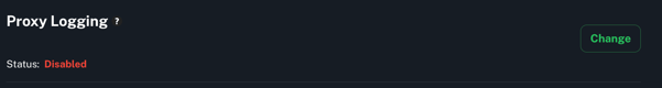 To change the status, click the Change button next to Proxy Logging.