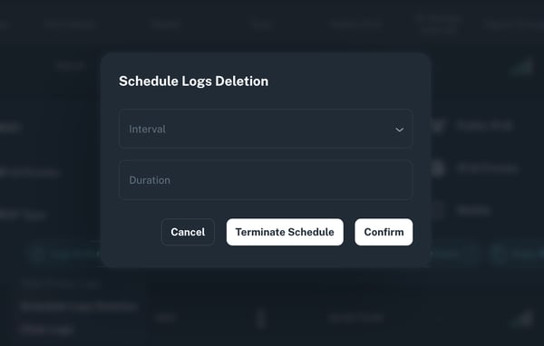 You can set the interval in days, weeks, or months. Once set, logs will be deleted automatically at each interval. You can also terminate an existing schedule at any time using the Terminate Schedule button.