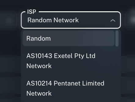 If you don’t require a specific ISP, you can simply choose Random, and the system will automatically rotate between available ISPs within the selected location for broader distribution.